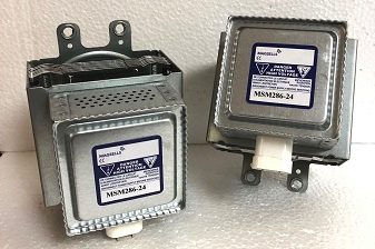 All cavity magnetrons consist of a hot filament (cathode) kept at, or pulsed to, a high negative potential by a high-voltage, direct-current power supply. The cathode is built into the center of an evacuated, lobed, circular chamber. A magnetic field parallel to the filament is imposed by a permanent magnet. The magnetic field causes the electrons, attracted to the (relatively) positive outer part of the chamber, to spiral outward in a circular path rather than moving directly to this anode. Spaced around the rim of the chamber are cylindrical cavities. The cavities are open along their length and connect the common cavity space. As electrons sweep past these openings, they induce a resonant, high-frequency radio field in the cavity, which in turn causes the electrons to bunch into groups. A portion of this field is extracted with a short antenna that is connected to a waveguide (a metal tube usually of rectangular cross section). The waveguide directs the extracted RF energy to the load, which may be a cooking chamber in a microwave oven or a high-gain antenna in the case of radar.