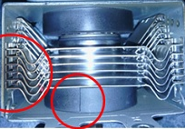 If the connectors that slip onto the magnetron filament terminals become loose or are improperly crimped, it causes a build up of resistive heat. As this occurs the connection further deteriorates causing the following visual symptoms Small blackened pits in the magnetron terminal(s)